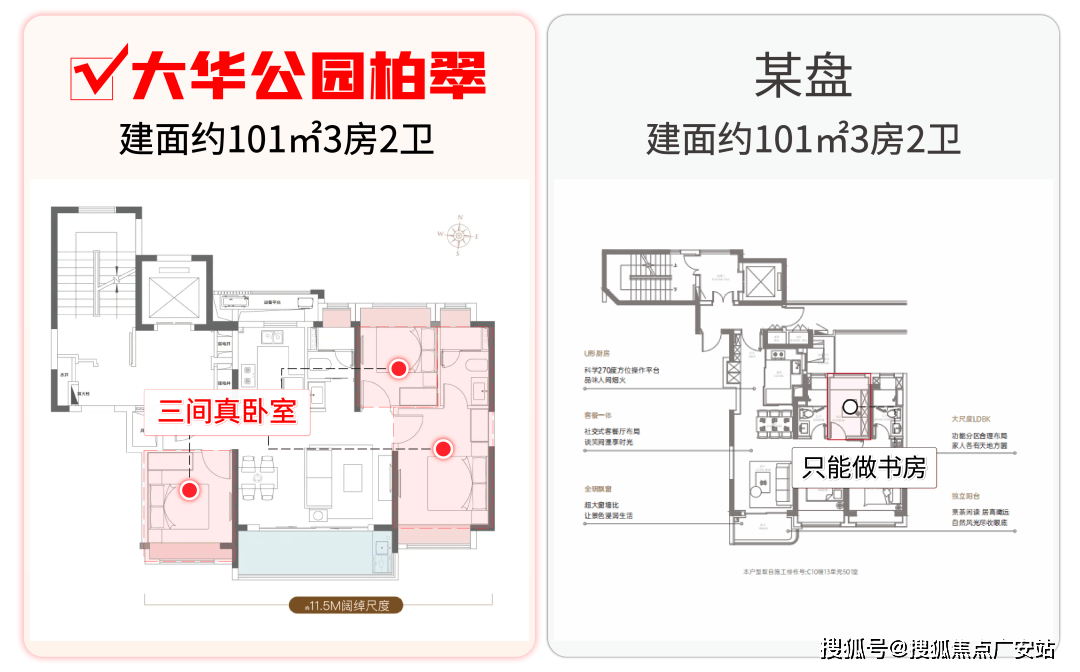 一方面,在整个中环甚至是整个上海,百平米3房能做到约11.5米面宽的新房,只有大华公园柏翠。