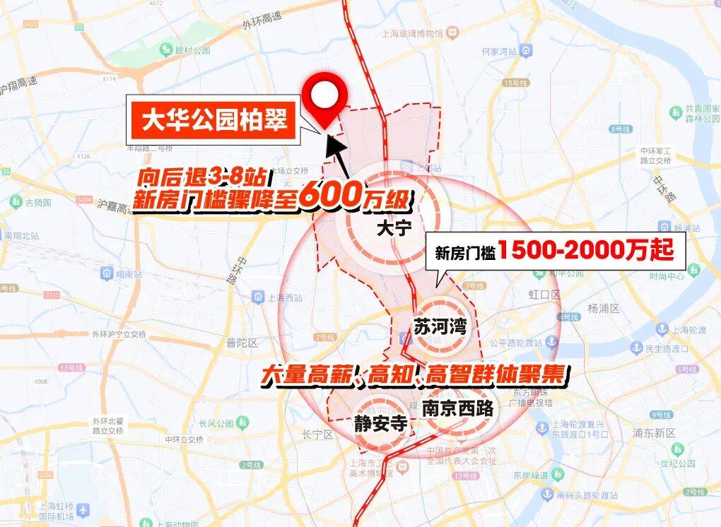 对于工作在大宁、苏河湾、静安寺、南京西路、人民广场、虹口等区域的购房者来说,大华公园柏翠就是地段更好的新房。