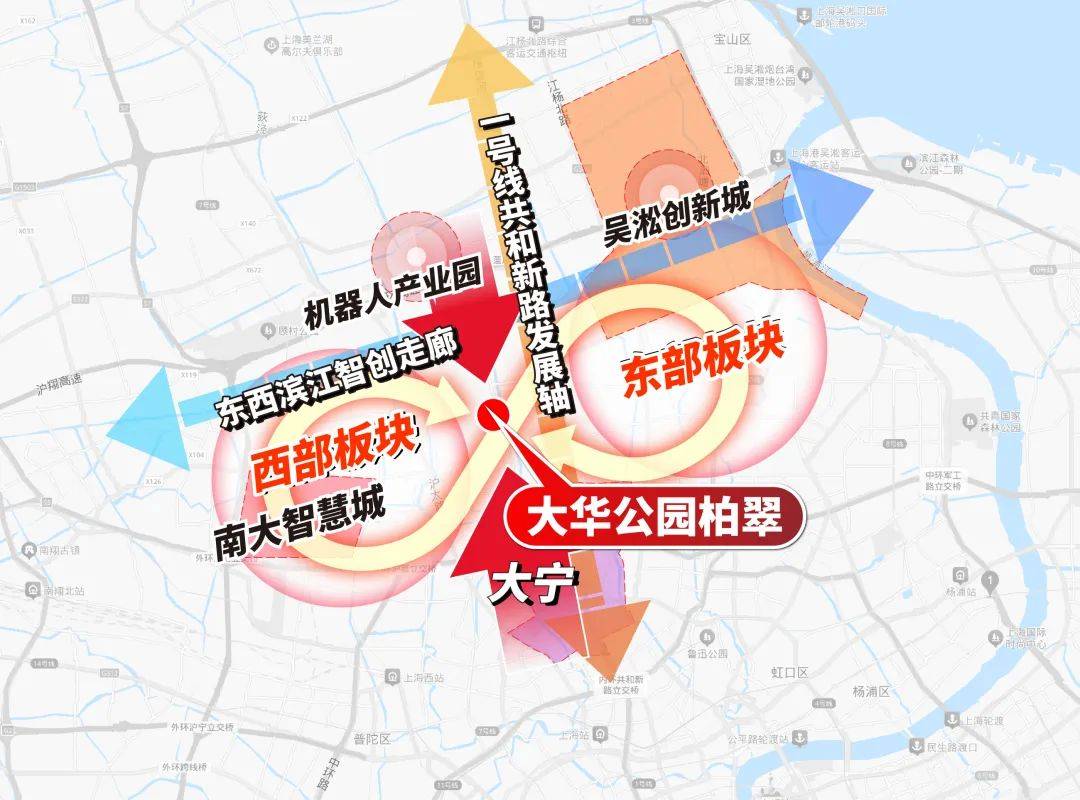 就在大华公园柏翠北侧,将规划整体打造一条蓝绿交织、清新明亮、连湖串链、通江达海和水韵特色鲜明、创新功能集聚、滨水活力彰显的上海大都市江南水廊发展带,体现中华风范、江南风光、创新风尚。