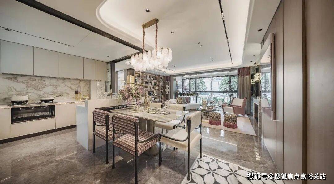 赞不绝口。首先厨房是半开放式的岛台,让整个公区的视野更开阔,尺度更具豪宅气度。其次敞开式的厨房能让家人沟通更顺畅,温馨感提升。最后,厨房的选品也是坚持使用主义,采购了方太的市售款,隐形油烟机颜值非常高,灶具和蒸烤箱则做了完全的联动。