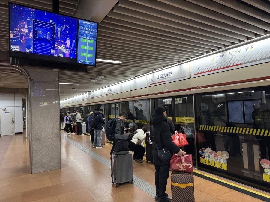 “今天我们往莘庄方向在常规的5点半头班车之前加开三班车,分别是5点10分、5点20分和5点25分。”1号线上海火车站见习车站站长冉杰告诉记者,为了让大家能尽早回家,他们今天早班员工到岗时间提前到了4点半,还增加了人手。