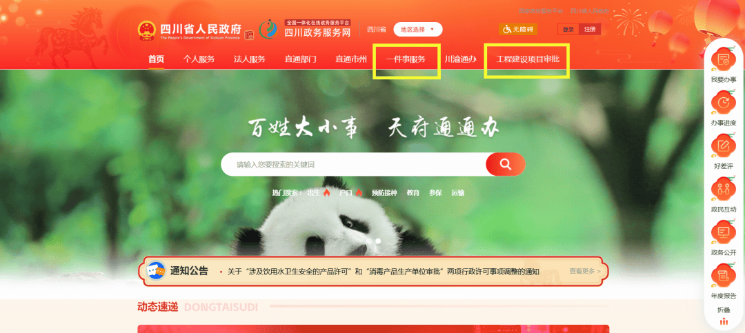 全省项目可登录四川省政务网(),点击工程建设项目审批或一件事服务在线申报。