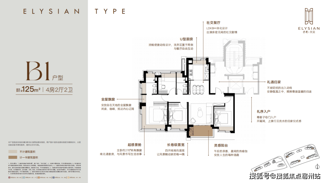 ③约270度弧面转角。重塑景观和建筑的关系,于外创造更柔和的建筑视觉效果,从内部也能打开更广角的观景视野。