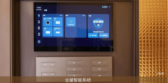 全屋智能家居系统,能通过App、中控、语音三大方式,调节全屋智能家居,包括客厅灯光、空调、地暖、新风、客厅和主卧窗帘等场景。