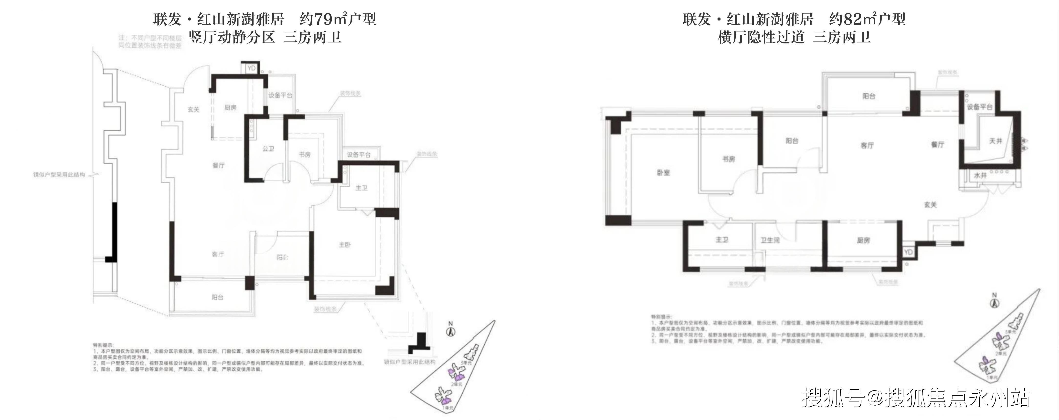78-82㎡舒适三房配置,项目的主力产品,约占总户数的 70%。该户型有78㎡和 82㎡两种面积段,主要区别在于主卧套房的大小和阳台宽度。