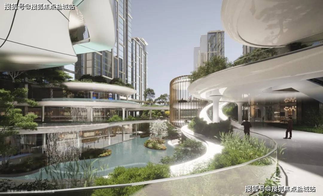 向内规划三个超2000m²中庭景观,平均楼间距达40-50米,实现户户推窗即景。